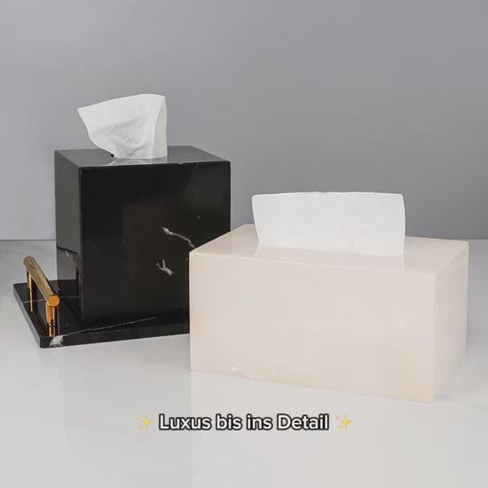 Die natürliche Marmor-Taschentuchbox verbindet Funktionalität mit ästhetischem Charme. Mit ihrem eleganten Design fügt sie sich nahtlos in jedes Wohnzimmer ein. Das hochwertige Naturmarmor-Material verleiht der Box eine langlebige und luxuriöse Ausstrahlung. Die quadratische Form und die feinen Details machen sie zu einem stilvollen Accessoire für jeden Haushalt. Erleben Sie die Verbindung von Eleganz und Praktikabilität mit unserer natürlichen Marmor-Taschentuchbox.